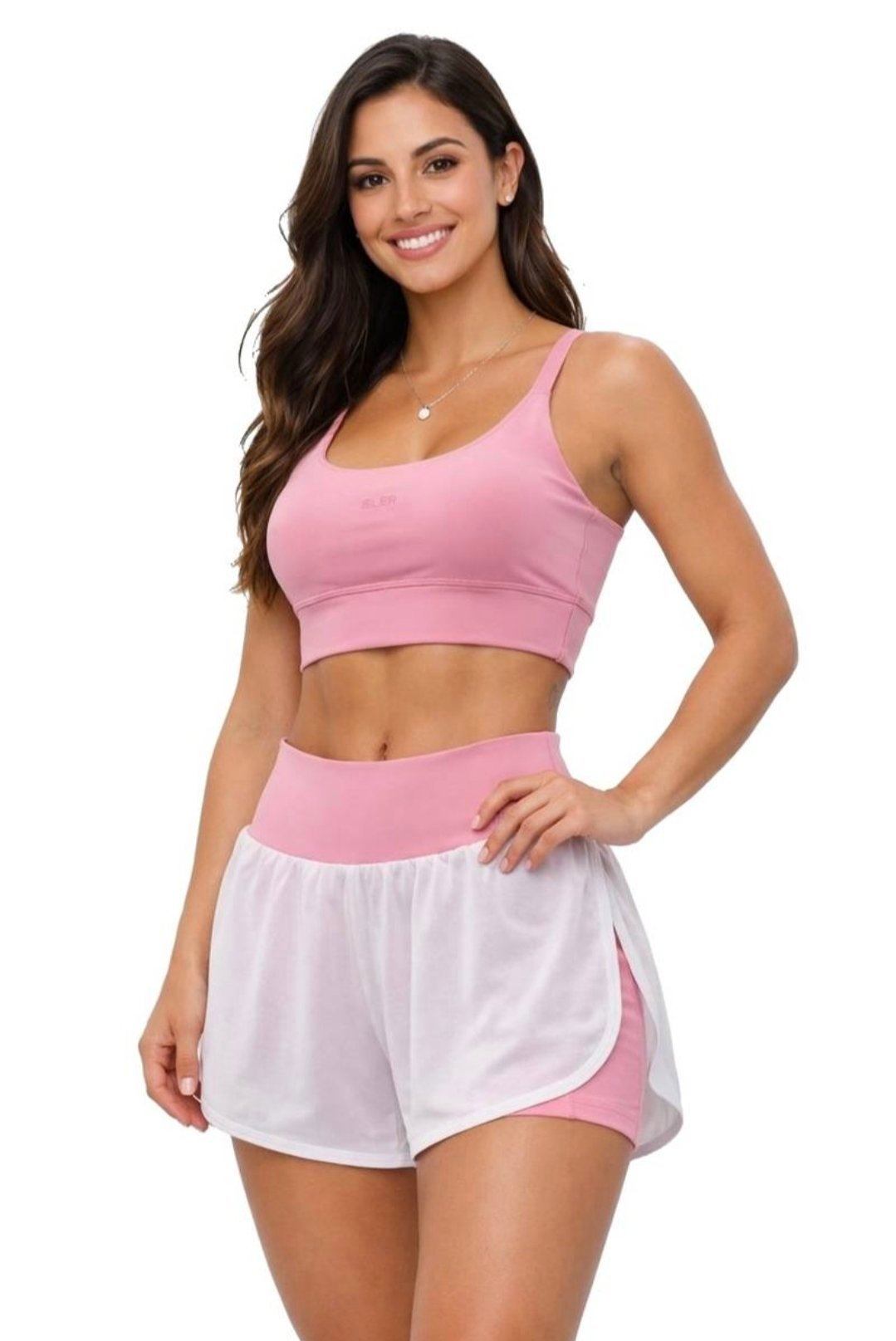 Conjunto Shorts Sobreposto Pink and White- Isler