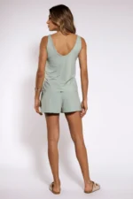 Versátil e fácil de combinar, a regata pode ser usada com shorts, saias ou calças de cintura alta, criando looks leves, elegantes e cheios de movimento.