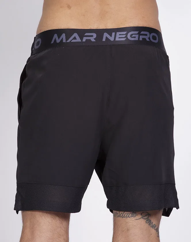 Shorts confeccionado em Tactel de poliéster com elastano. Elástico personalizado Mar Negro no cós costas. Detalhe em tela na barra, recorte lateral.