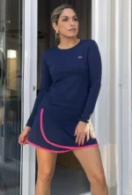 T-shirt de modelagem levemente acinturada. Possui manga longa e proteção solar UV 50.