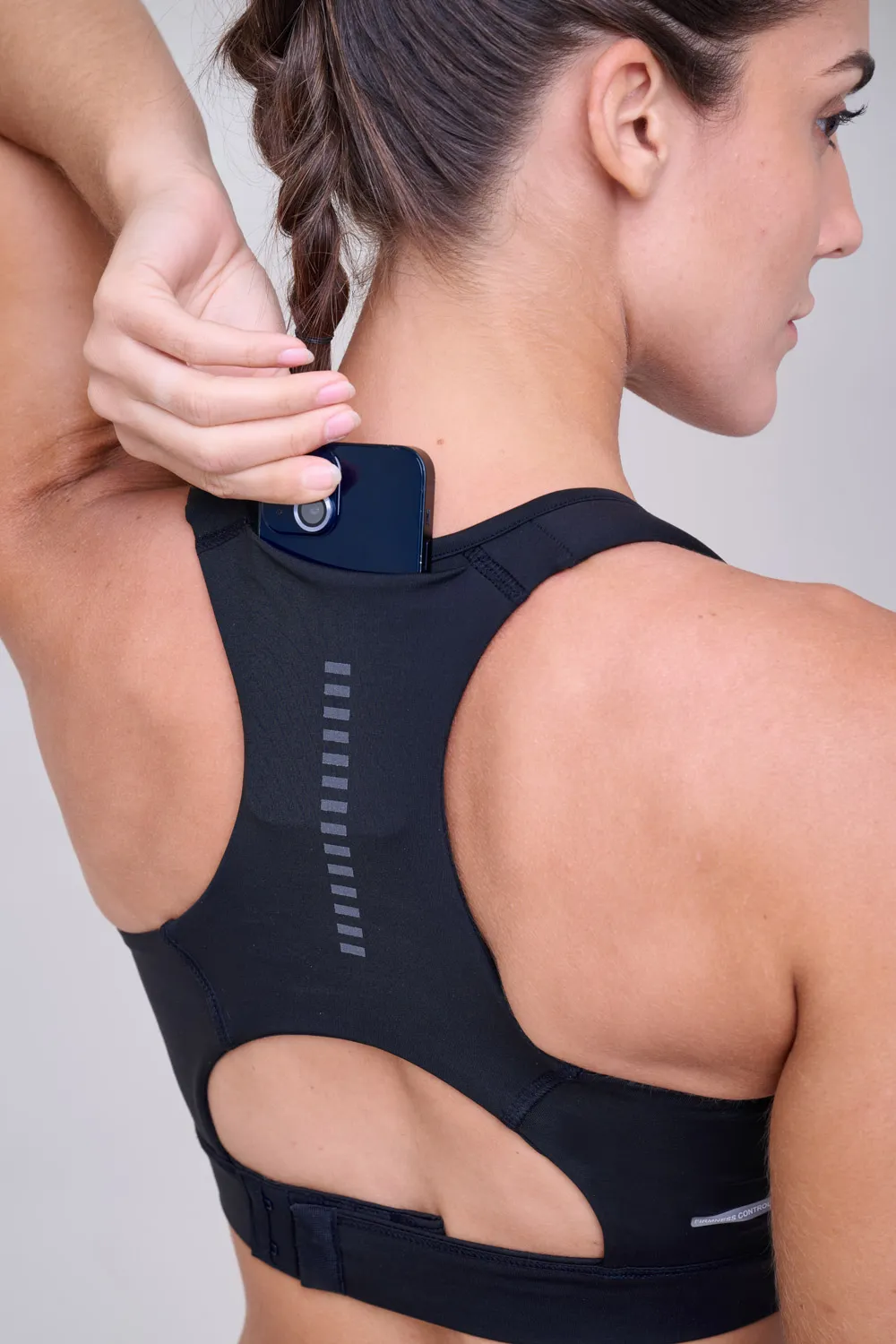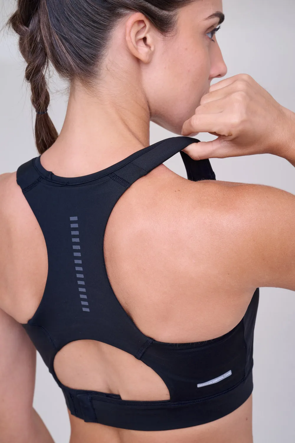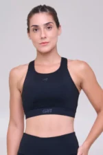 - Forro com costura vertical no centro que bloqueia o deslocamento do bojo, garantindo que ele permaneça no mesmo lugar do início ao fim da corrida;